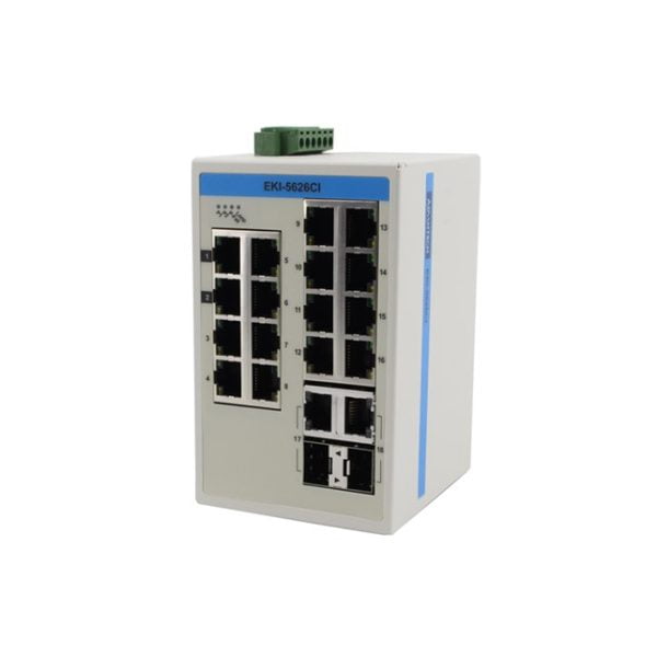 ProView 16-Port Gigabit Industrial Switch with 2x RJ45/SFP Combo, Extreme Temp -40~75℃ (EKI-5626CI-AE)