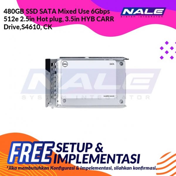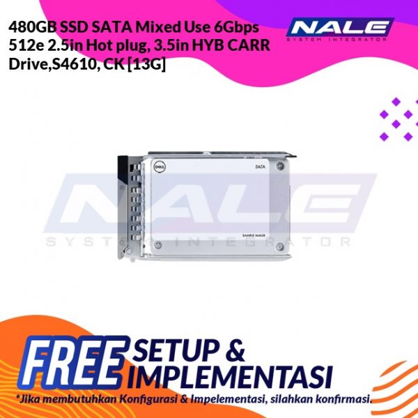 480GB SSD SATA Mixed Use 6Gbps 512e 2.5in Hot plug, 3.5in HYB CARR Drive,S4610, CK (400-BDWE)