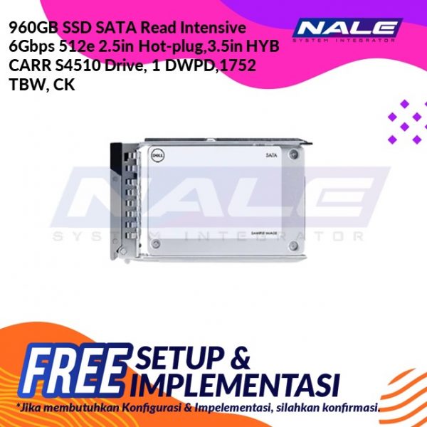 960GB SSD SATA Read Intensive 6Gbps 512e 2.5in Hot-plug,3.5in HYB CARR S4510 Drive, 1 DWPD,1752 TBW, CK (S2-SATA)