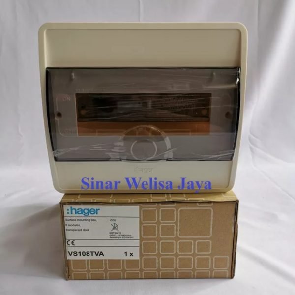 Hager BOX MCB 8 Group Merk: Hager Warna: Putih isi: 8 Group Model: OutBow Item: VS108TVA Cover/Tutup: Transparent Cover