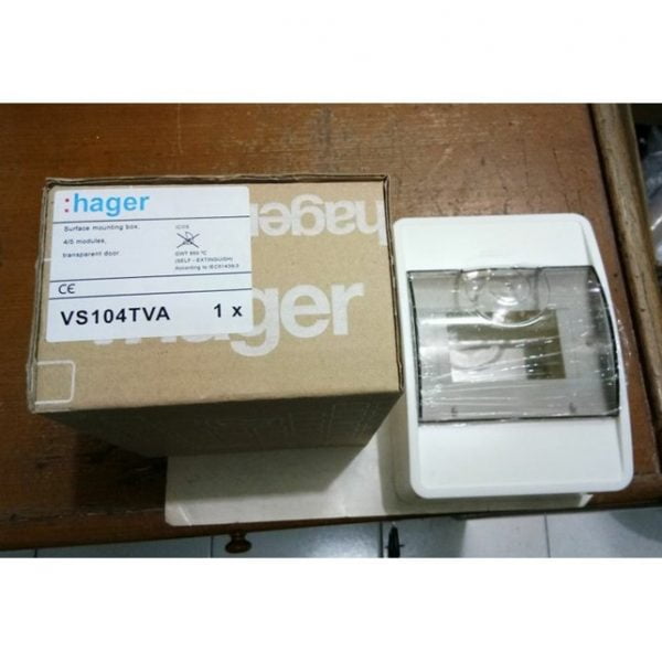 Box MCB 4 group Tipe VS104TVA Icos Transparan untuk Penutup MCB Merk Hager.. Tipe Outbow (Dipasang di luar Tembok).. Pintu