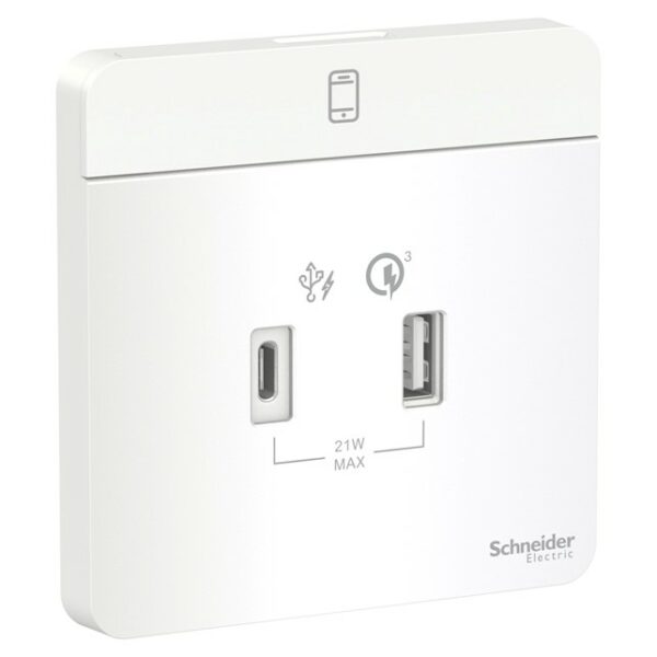 Outlet Data Schneider AvatarOn, USB charger, type A + C, 2.1…3 A, White