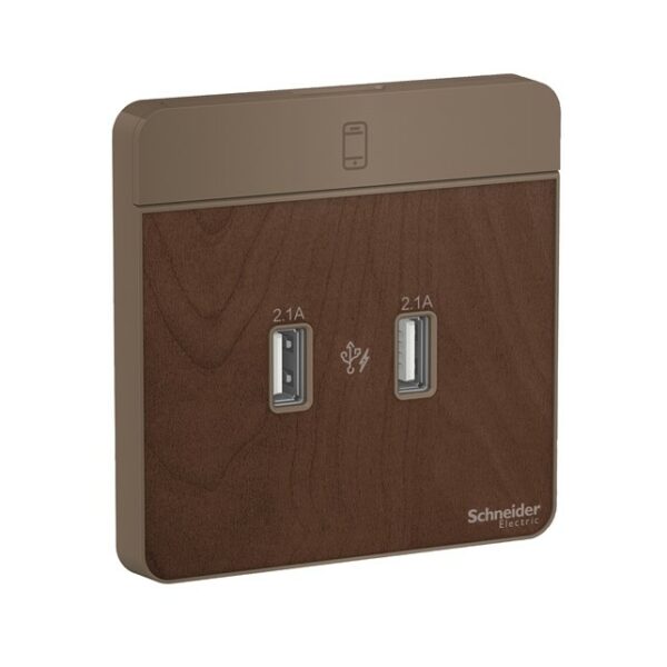 Outlet Data Schneider AvatarOn, USB charger, 2 type A, 2.1 A, Wood