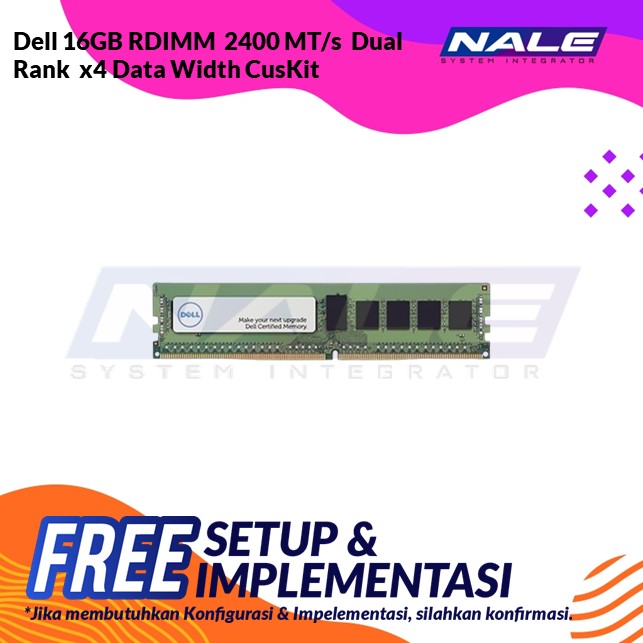Deskripsi Dell 16GB RDIMM 2400 MT/s Dual Rank x4 Data Width CusKit