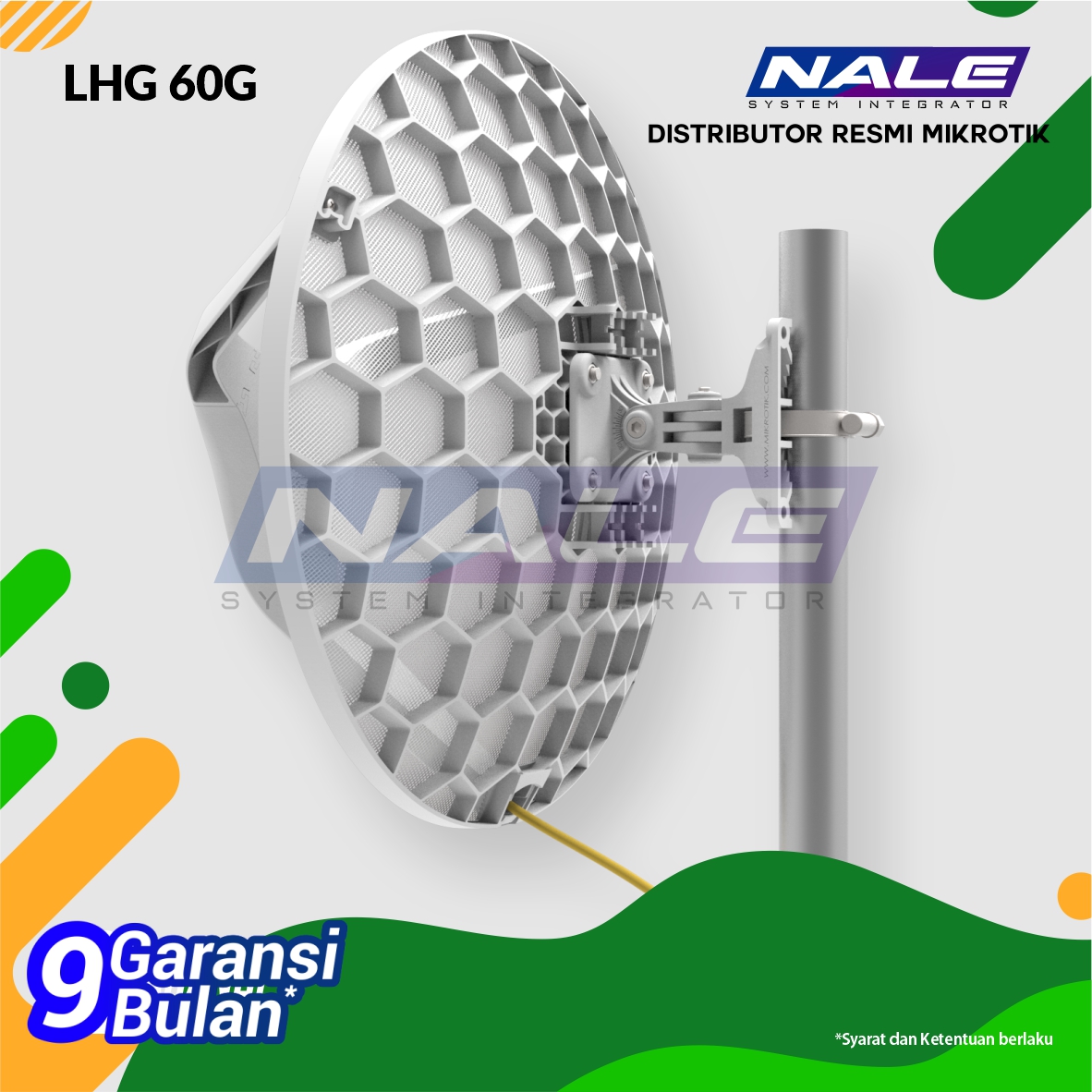 *Sudah termasuk 24V 0.38A Power adapter, Gigabit PoE injector, LHG mount, Aim tool