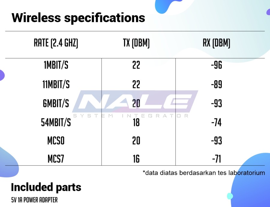 • Wireless : 2.4 GHz 802.11b/g/n, dual-chain