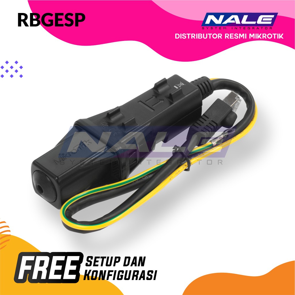 RBGESP adalah Gigabit Ethernet Surge Protector yang dapat digunakan untuk melindungi jaringan dari kerusakan akibat petir atau lonjakan arus. Dilengkapi dengan casing luar ruangan dan kabel grounding khusus. Panjang kabel maksimum yang disarankan adalah ~ 40 meter.