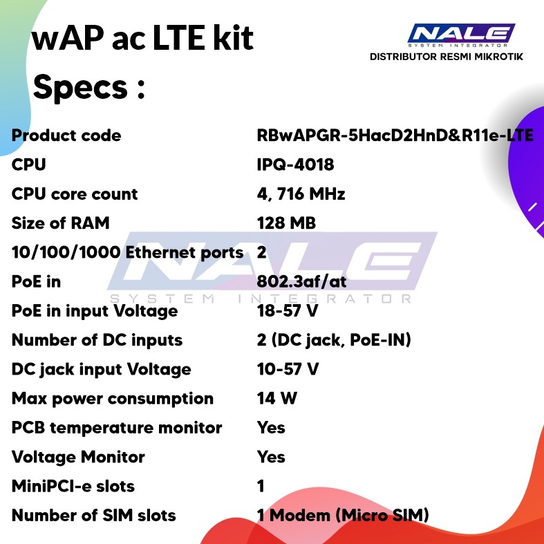 Paket kecil dengan ambisi besar – wAP ac LTE adalah titik akses rumah dual-band (2,4 / 5 GHz) yang sangat hemat biaya berdasarkan faktor bentuk wAP tahan cuaca kami yang populer. Ini memiliki dua port Gigabit Ethernet – Anda dapat menggunakan perangkat sebagai router kabel dengan cadangan LTE melalui slot Micro SIM. Sebagai alternatif, Anda juga dapat menikmati pengalaman nirkabel di mana saja – di dalam atau di luar ruangan. wAP ac LTE dirancang untuk memberikan koneksi yang kuat dan andal di hampir semua situasi dan kondisi cuaca. Ini dapat menahan suhu dari -30 C ° hingga +60 C dan dapat dengan mudah dipasang di dinding, langit-langit atau tiang.